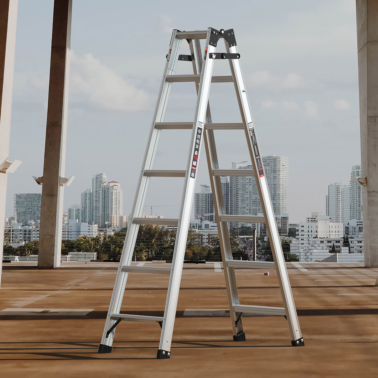 中创 梯子家用多功能铝合金加厚折叠便携工程梯双侧2米人字梯直梯