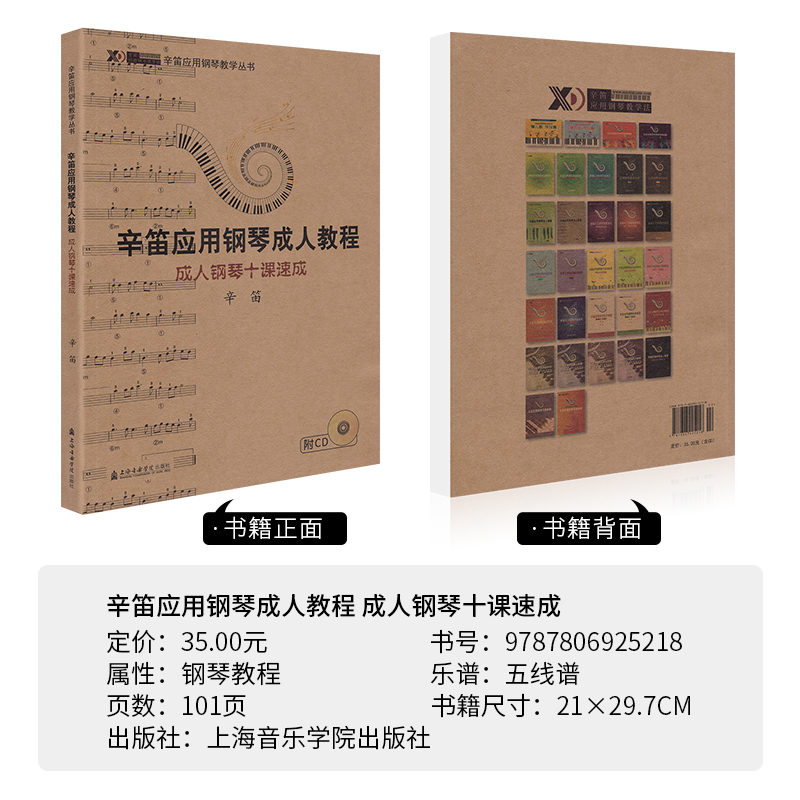 成人钢琴十课速成 上海音乐学院出版 附CD五线谱版 老年成人大学钢琴基础练习曲教材 社 辛迪应用钢琴成人教程 正版