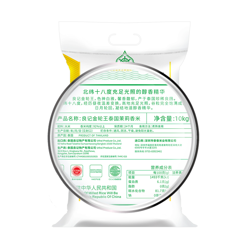 良记金轮泰国原装 进口茉莉香米金轮王系列清莱府进口10kg