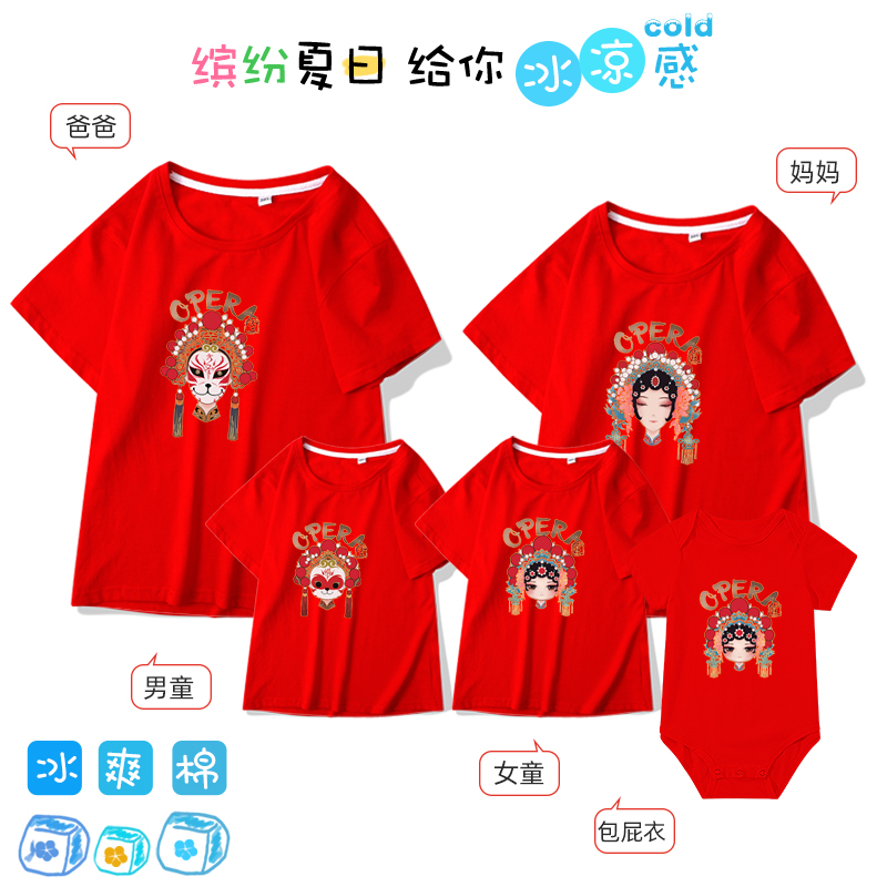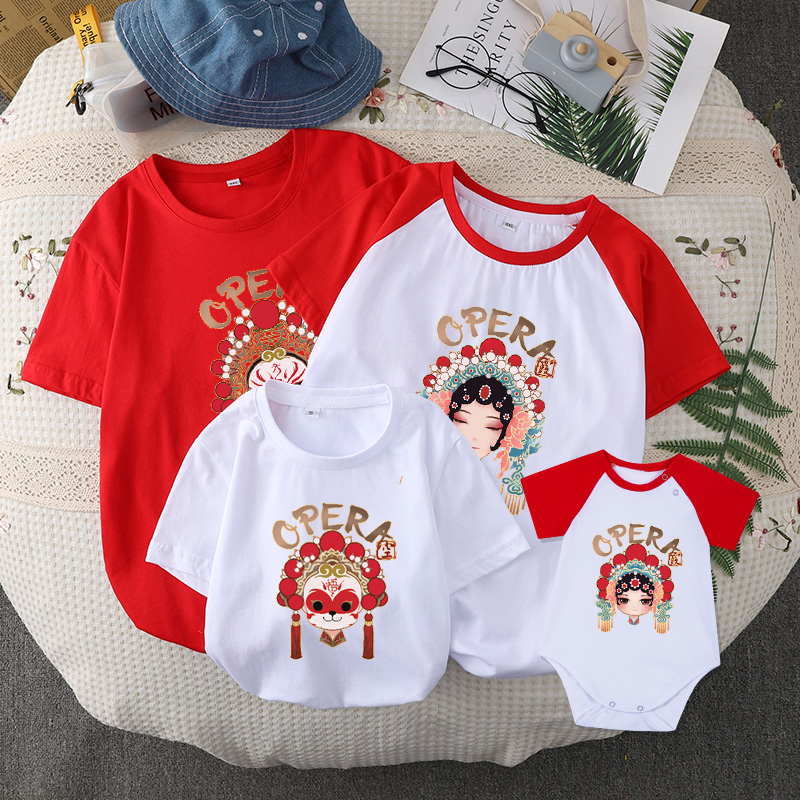 2025新款 网红亲子装 母女装 中国风京剧全家装 t恤一家三口四口夏装