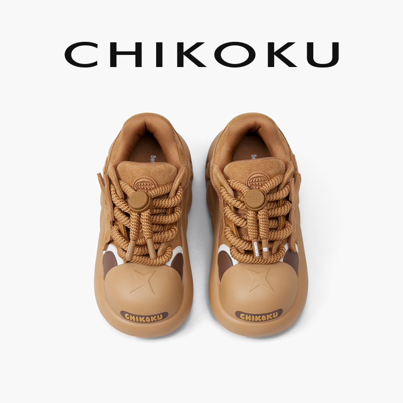 chikoku呲牙鲨牛皮运动休闲老爹面包大头鞋 秋冬软 女增高厚底板鞋