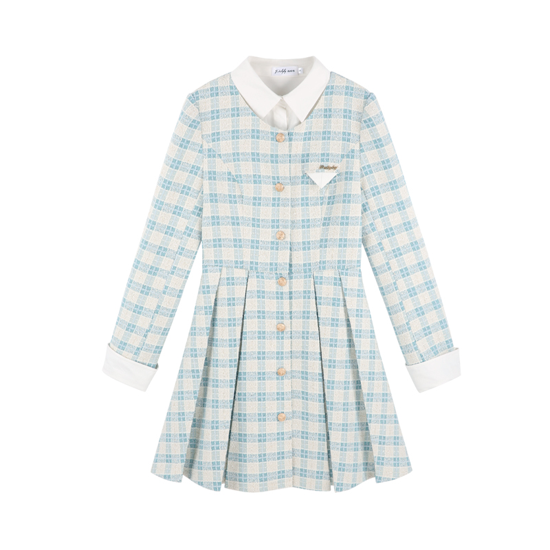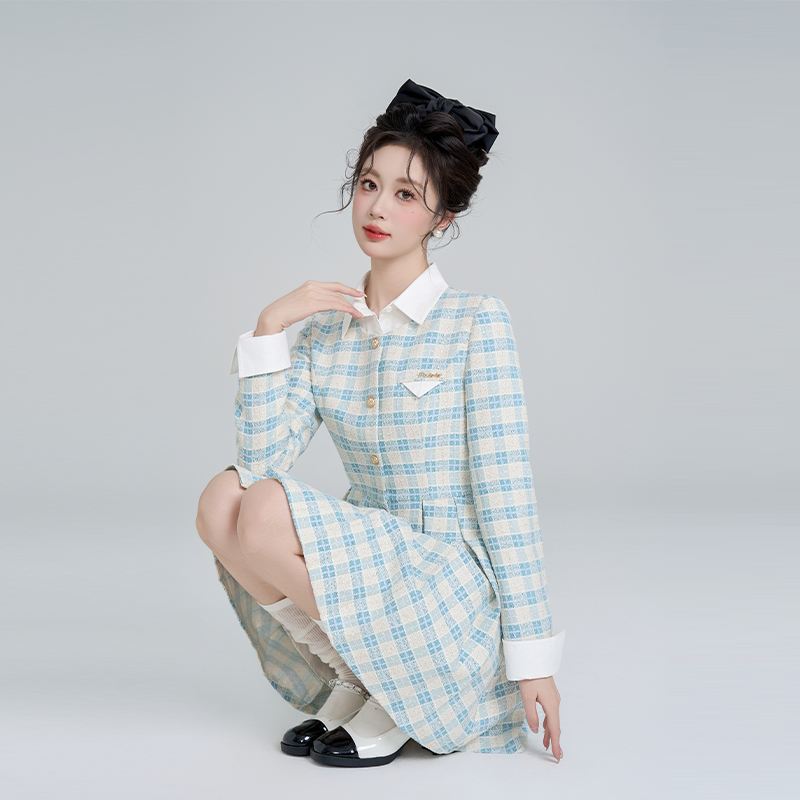 PRICH时尚 收腰通勤裙子女 小香风撞色翻领假两件连衣裙2025冬新款