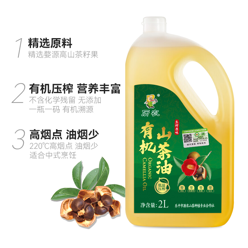 历农有机红花山茶油2L 纯正茶油官方旗舰店 冷榨一级茶籽油食用油