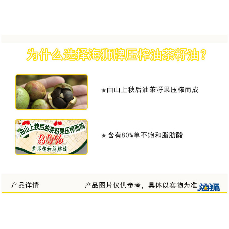 海狮茶籽油山茶油物理压榨一级食用油中华老字号商超同款