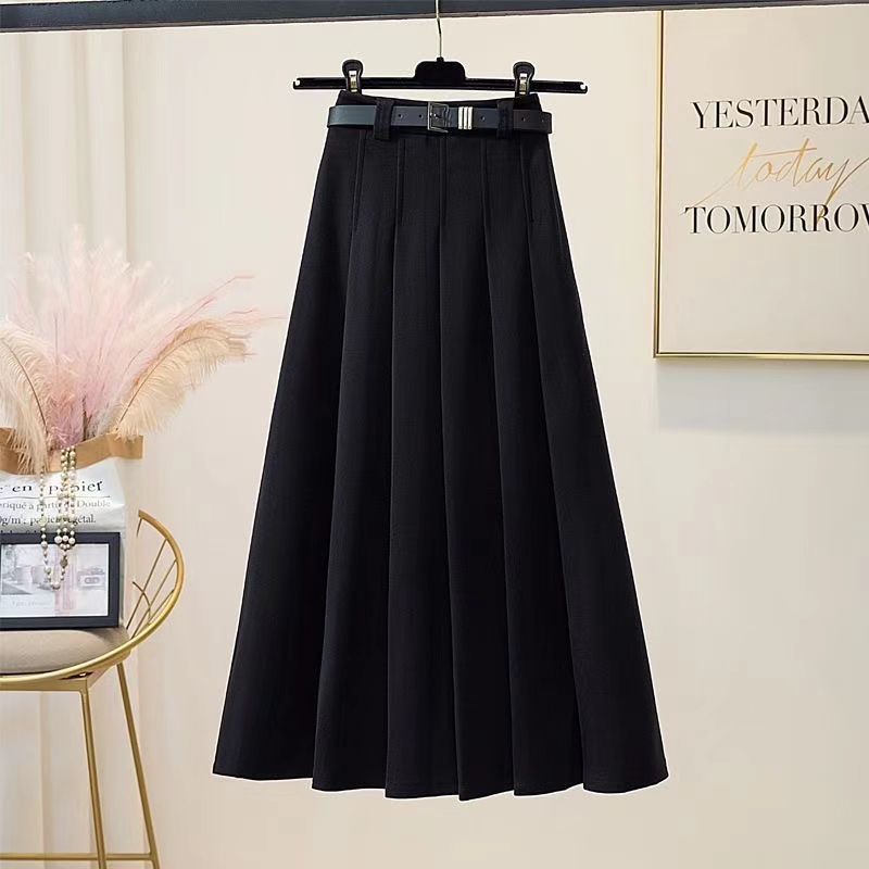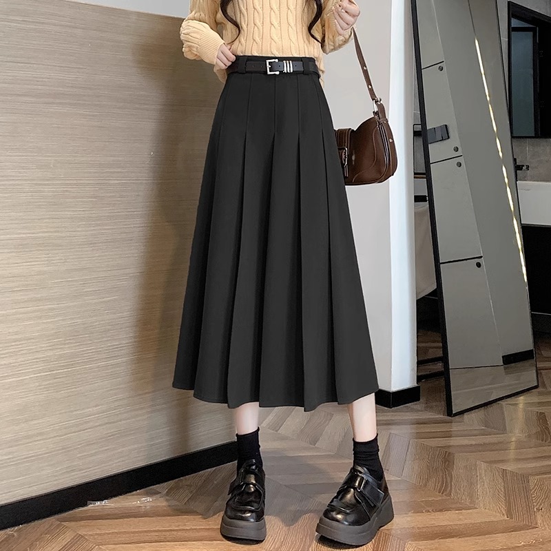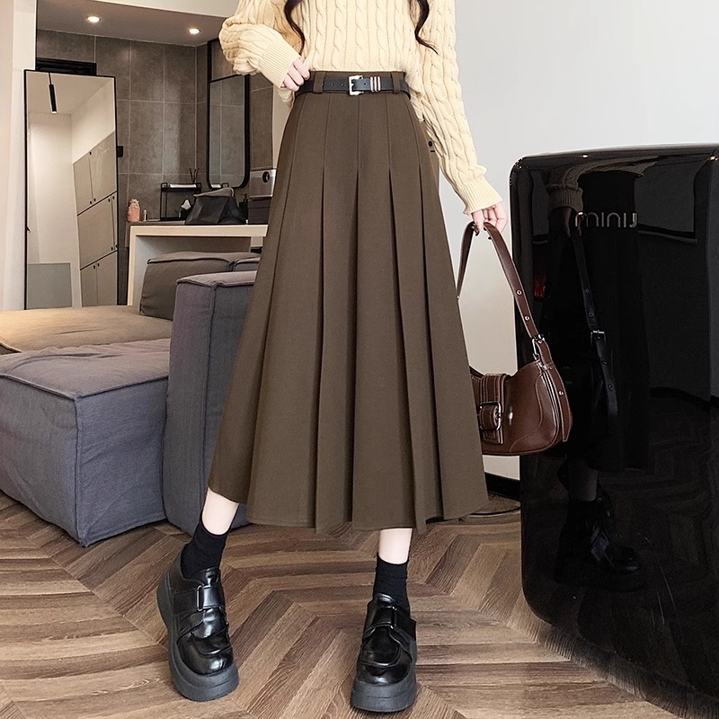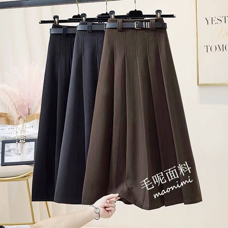小个子宽松a字百褶中长裙子 2025新款 时尚 高腰毛呢半身裙女秋冬季