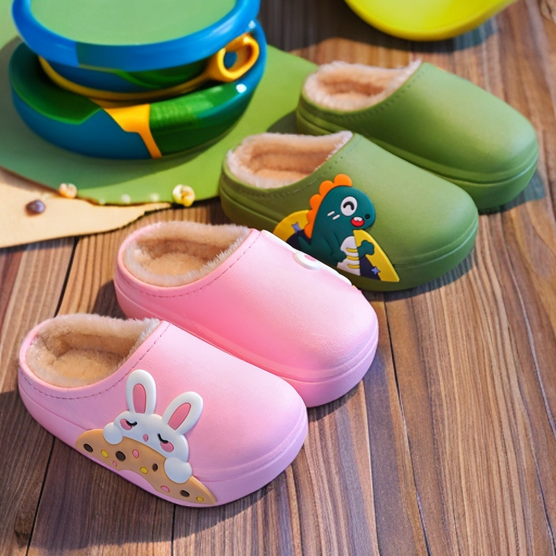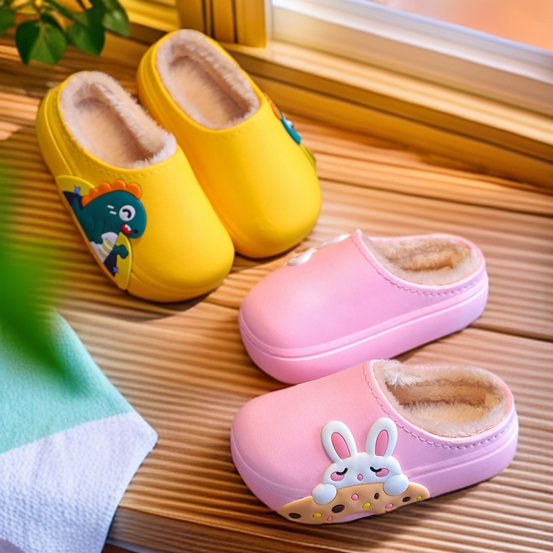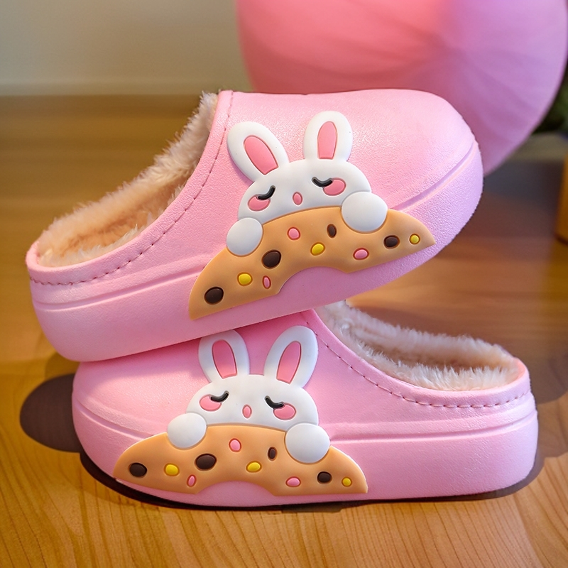 室内防滑保暖男女童软底家居宝宝毛毛外穿棉鞋 可爱儿童棉拖鞋 冬季