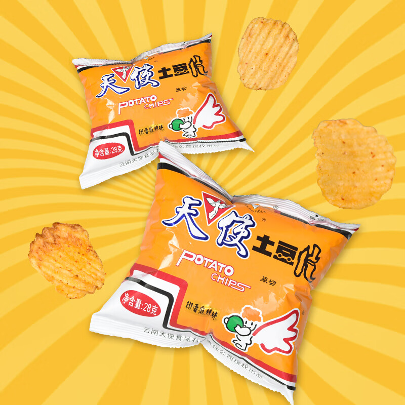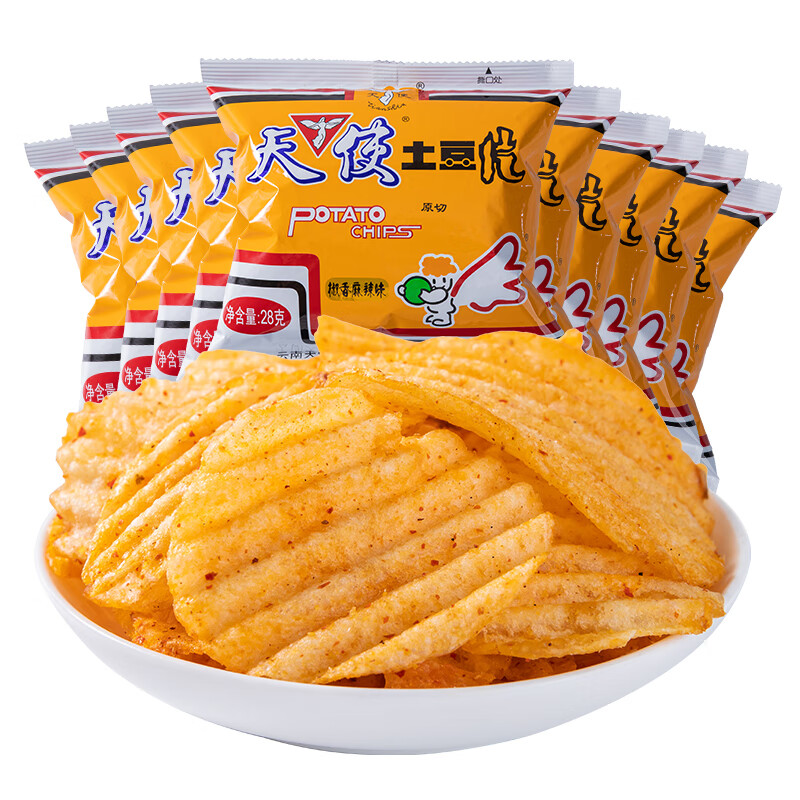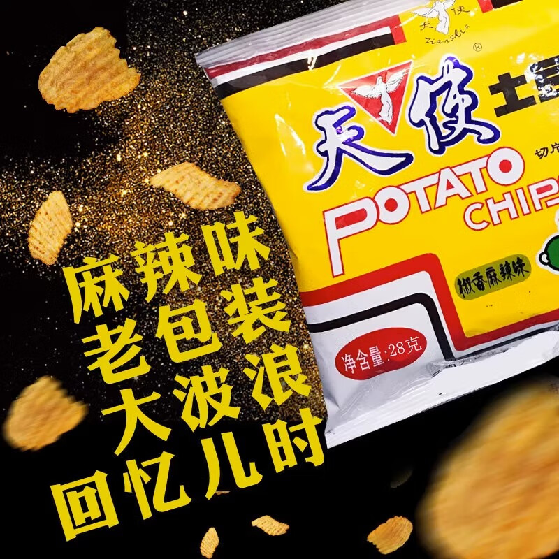 天使土豆片28g 云南原切大波浪椒香麻辣味薯片怀旧休闲零食 10袋装