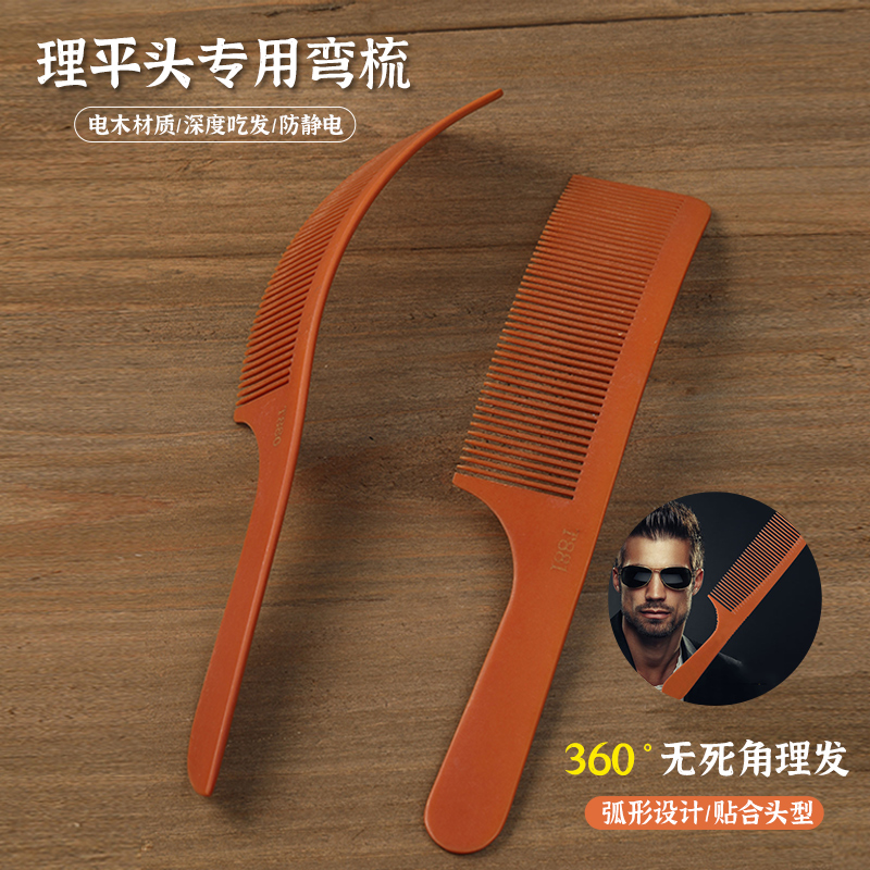 理发店专用弯梳子男士 剪发平头梳弧形翘梳苹果扁梳发廊美发电木梳
