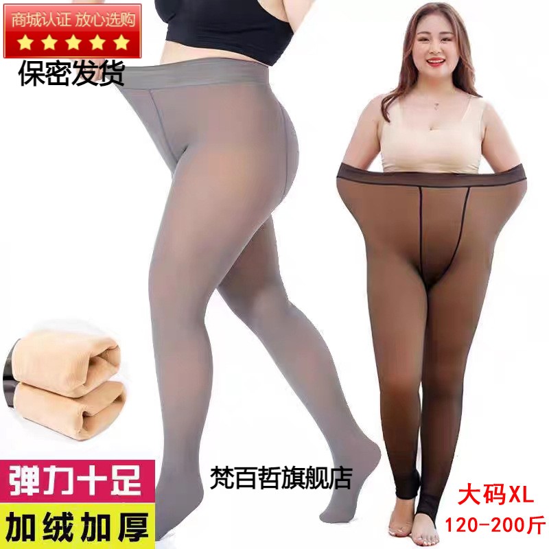 大码 袜 光腿神器女秋冬胖mm加肥加大肉肤色丝袜加绒不掉裆打底连裤