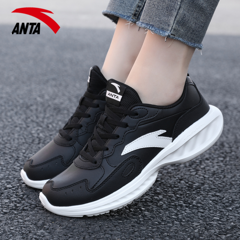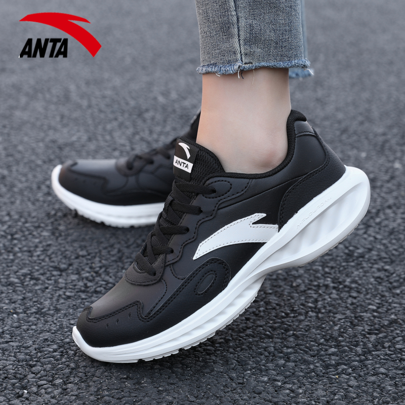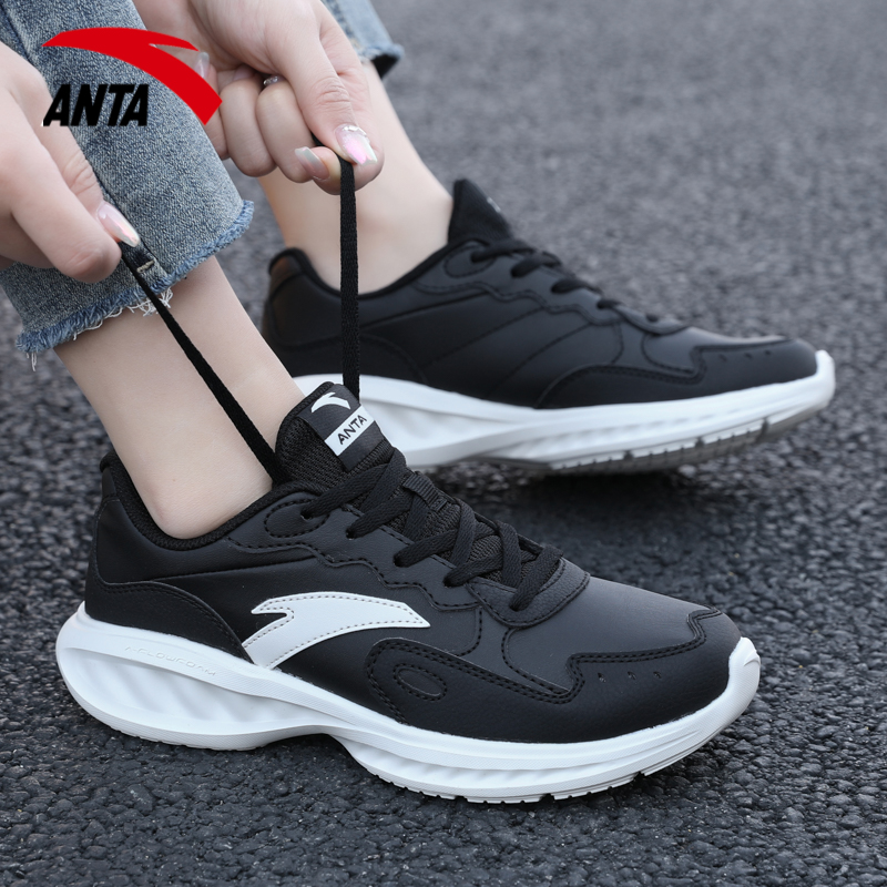女皮面旅游鞋 安踏轻便防泼水跑鞋 减震休闲运动鞋 软底跑步鞋 女秋季