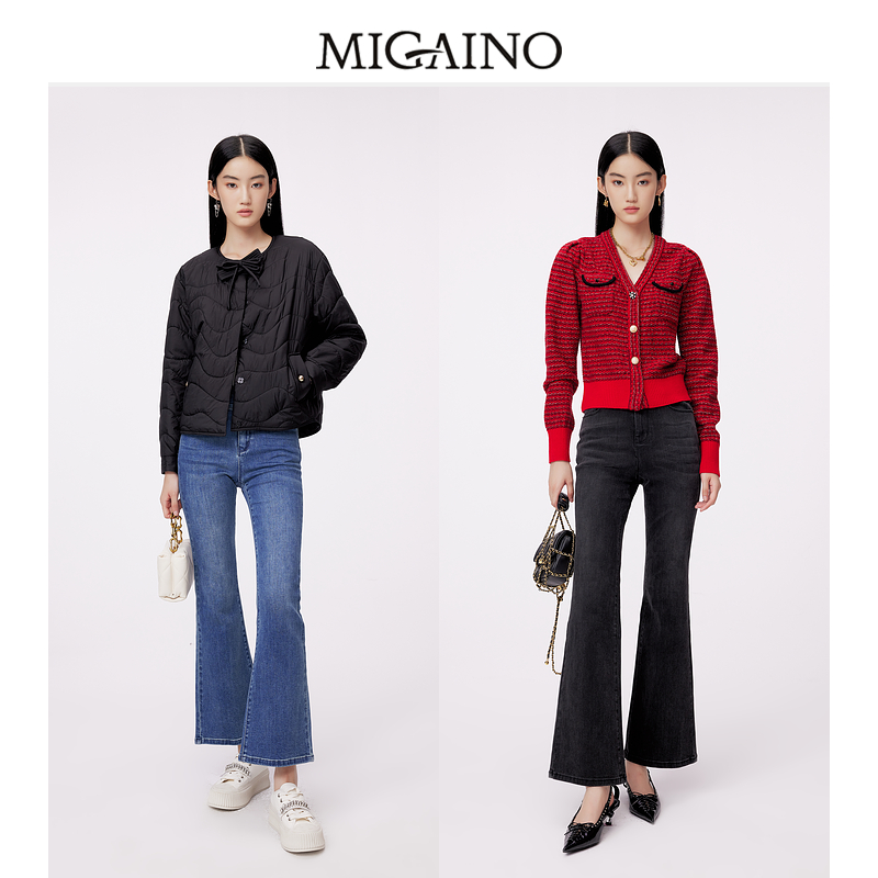 2025夏季 女小高腰微喇叭通勤裤 Eland衣恋牛仔裤 新款 莱卡面料