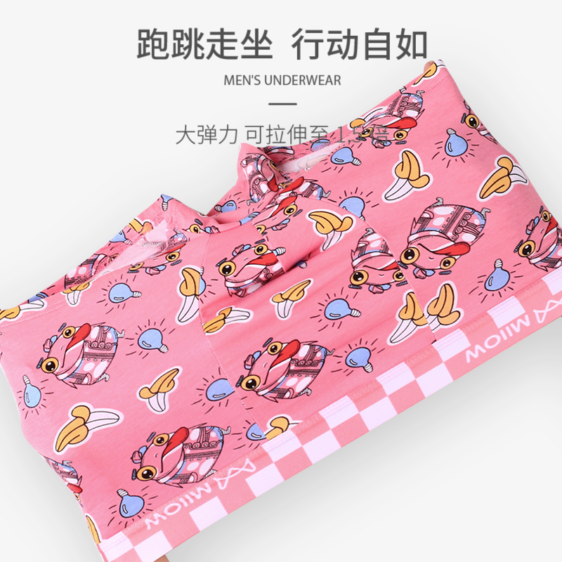 短裤 男生纯棉四角抑菌透气青少年运动猛男粉色大码 头 内裤 猫人男士
