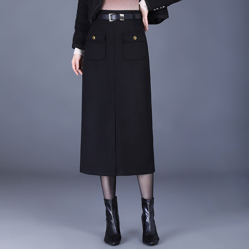 毛呢半身裙女春秋冬季 梨形身材伞裙黑色半裙气质a字长裙 2025新款