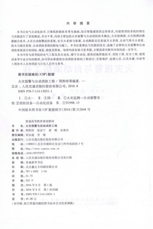 普通高等教育规划教材 火灾报警与自动消防工程 人民交通