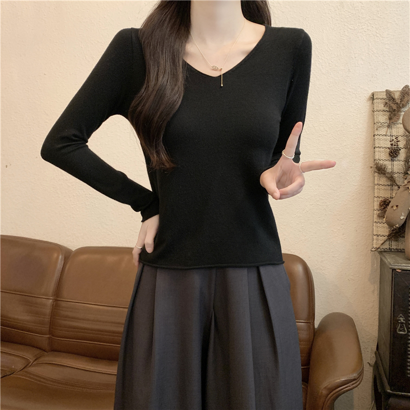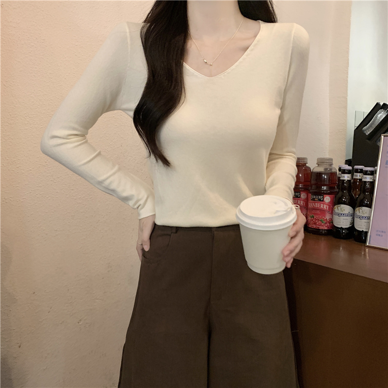 内搭上衣 高级感独特气质修身 韩系学院风v领针织衫 毛衣女秋冬新款