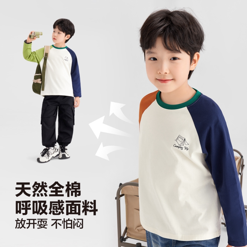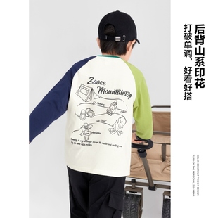 男童T恤长袖 男孩春秋款 儿童纯棉插肩袖 2025新款 上衣 秋装 左西童装
