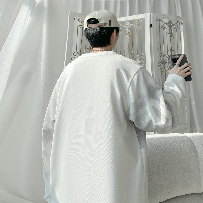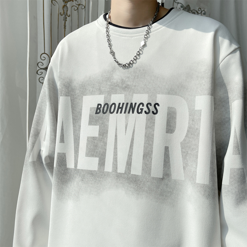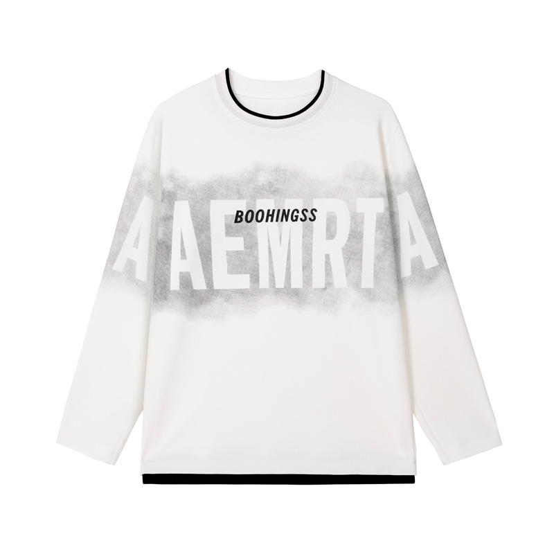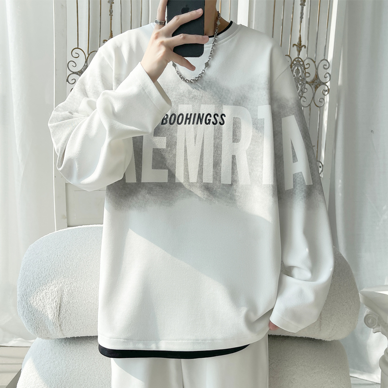 迈特优假两件圆领长袖 潮牌字母印花宽松重磅卫衣 T恤男春秋季