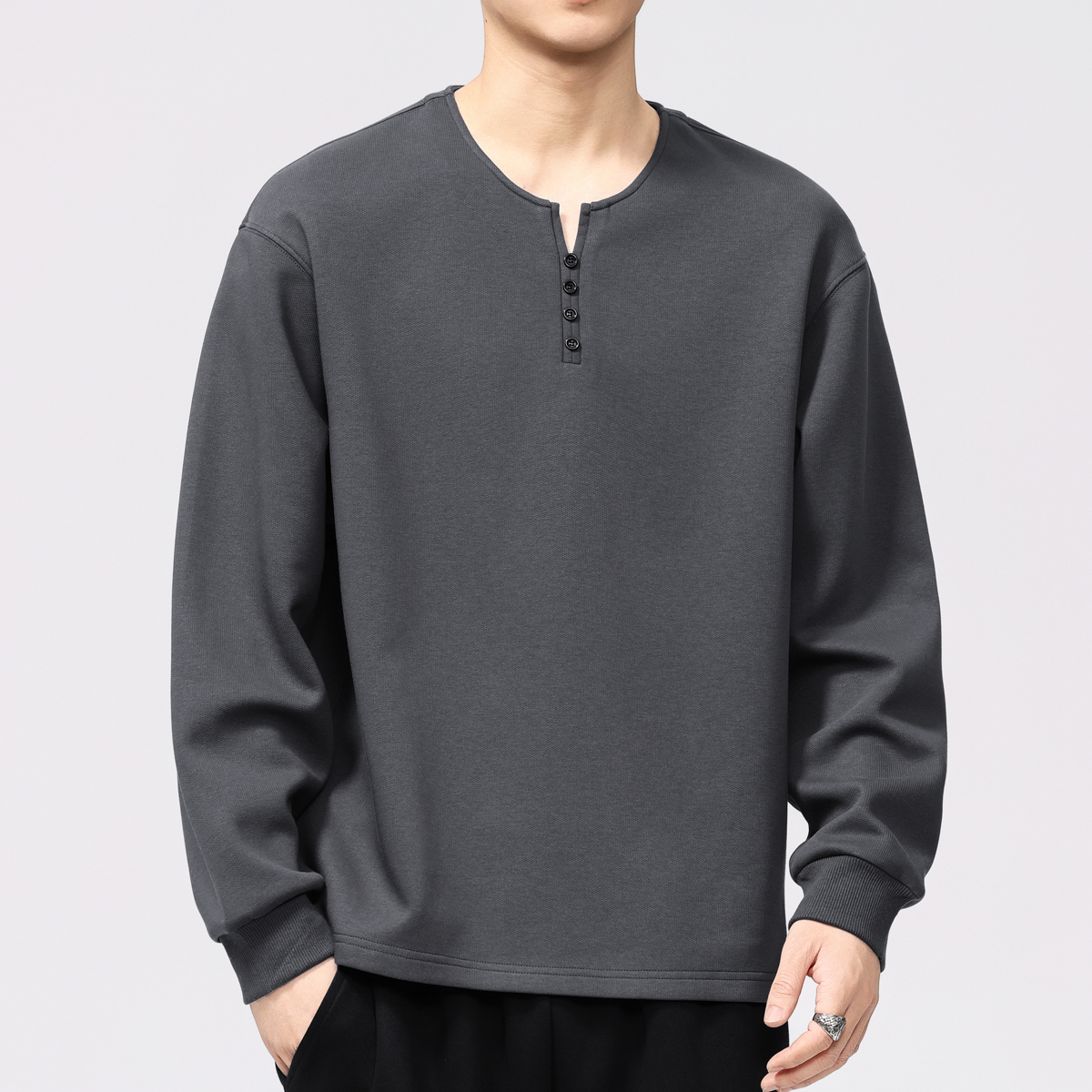 2025年春季 男士 新款 美式 带扣V领t恤 长袖 休闲正肩内搭打底衫 亨利衫