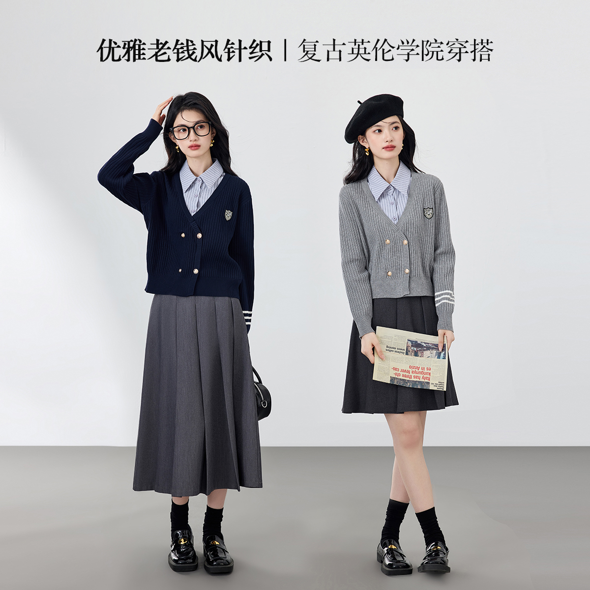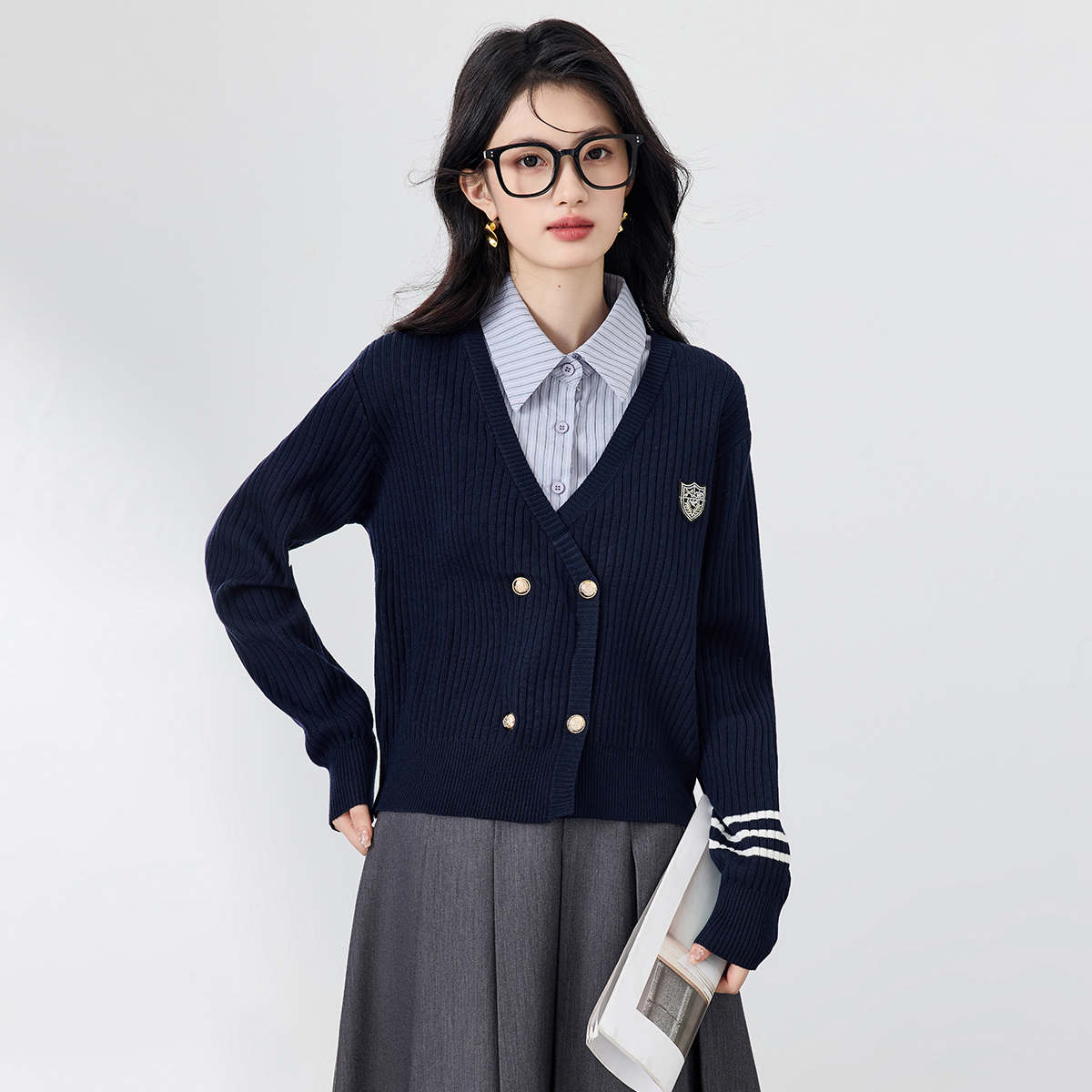 针织衫 SeRina 学院风衬衫 新款 拼接女假两件套 Blue沙芮娜2025秋季