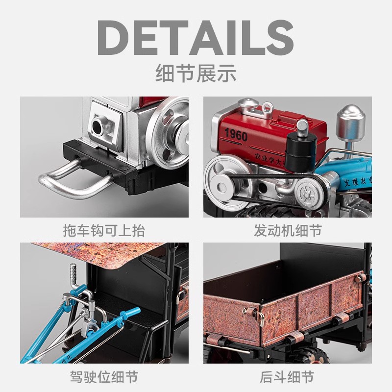 车致1 24复古手扶拖拉机仿真合金汽车模型收藏摆件玩具车男孩礼物