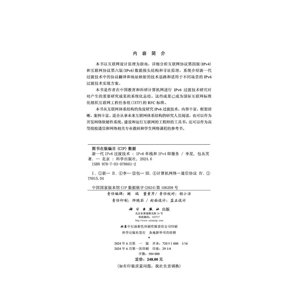 社 科学出版 全新正版 新一代IPv6过渡技术—IPv6单栈和IPv4即服务