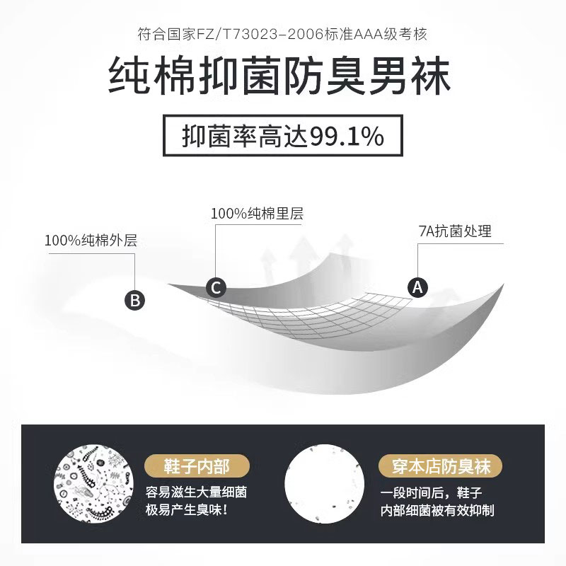 10A抗菌 商务西装 袜子男士 中筒袜吸汗防臭春款 长袜 纯棉秋冬季