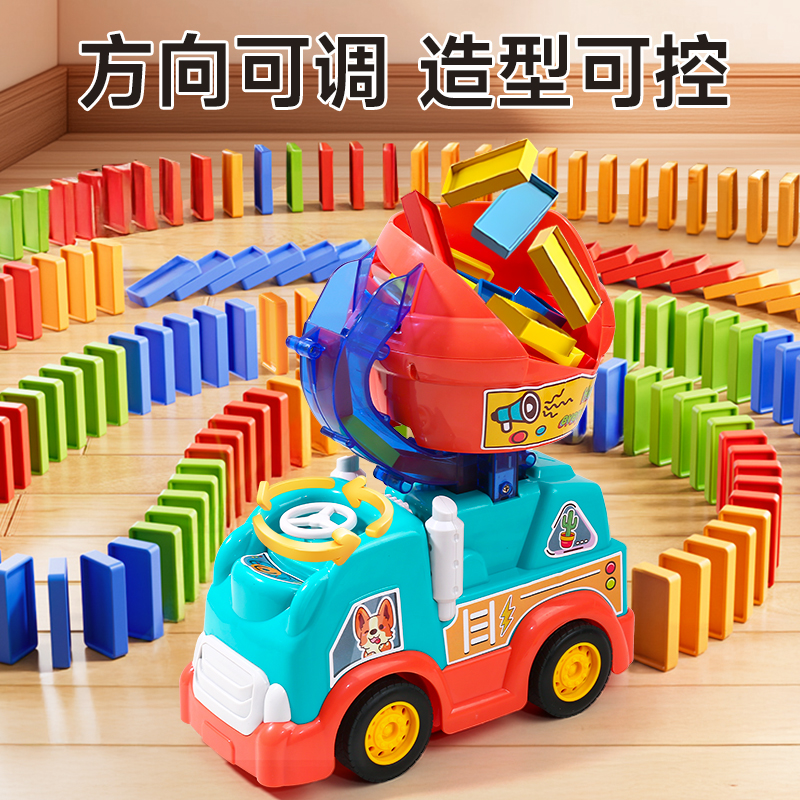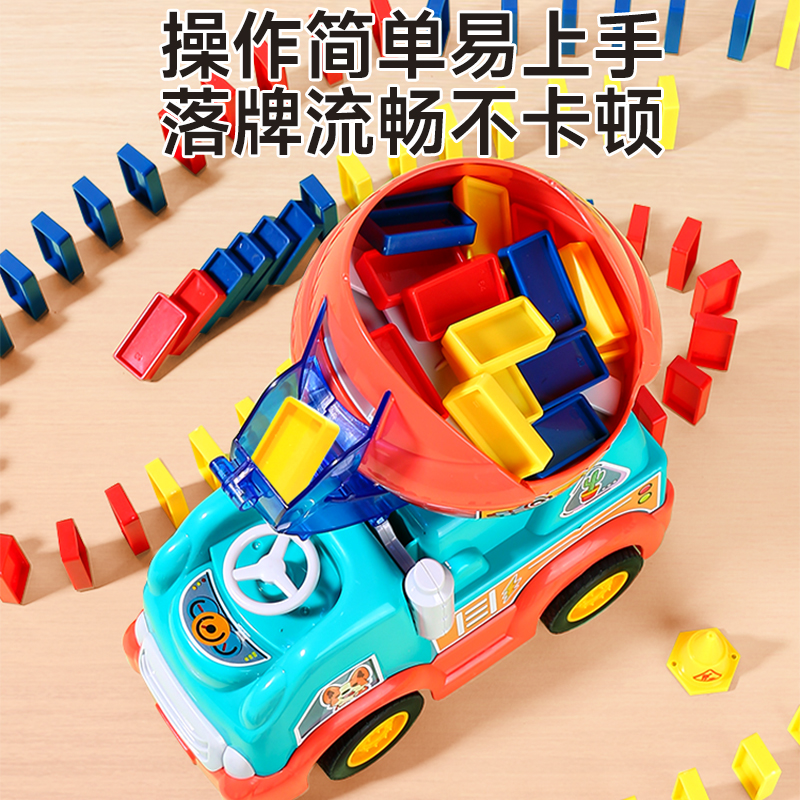 多米诺骨牌自动发放牌电动搅拌汽车儿童宝宝积木男孩女孩益智玩具