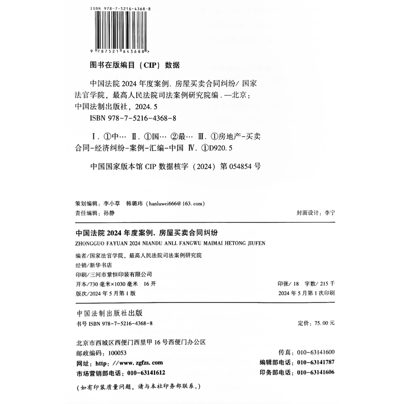 房屋买卖合同纠纷 专业实用 社 中国法院2024年度案例 9787521643688 中国法制出版 法律实务 2024新书 典型案例