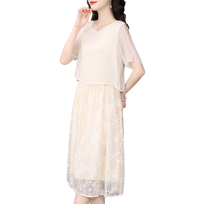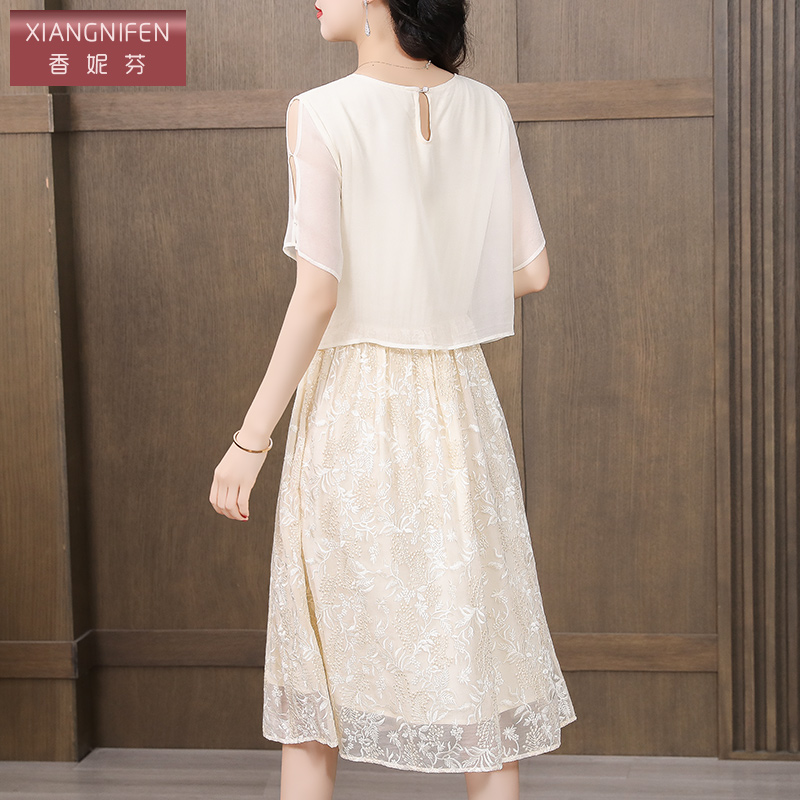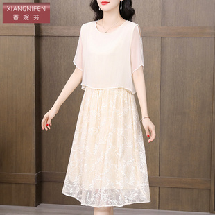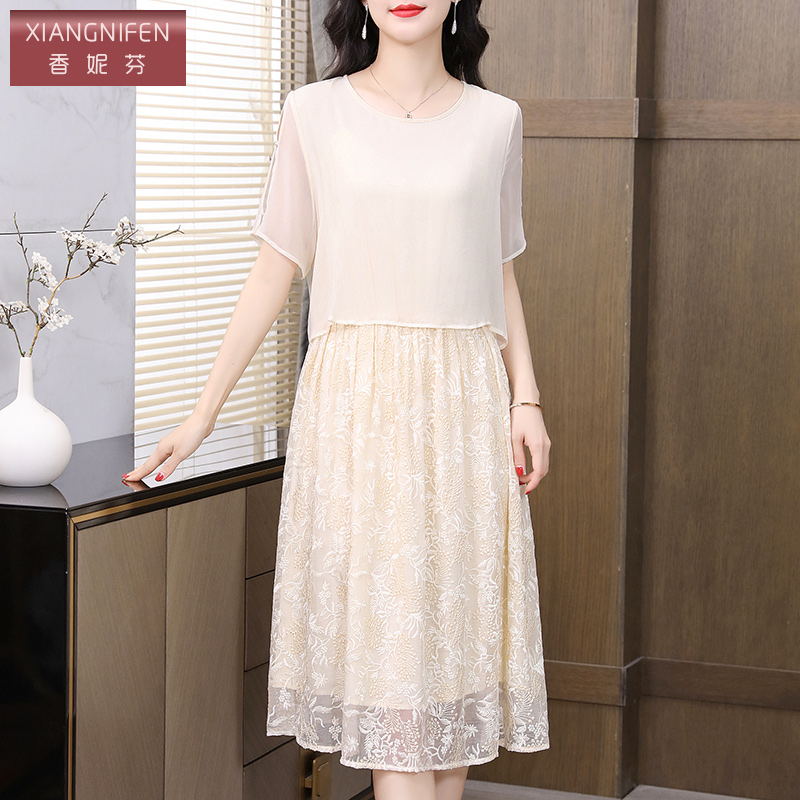 香妮芬白色端庄气质中年妈妈连衣裙夏装 轻奢高级感显年轻 2025新款
