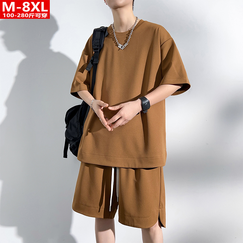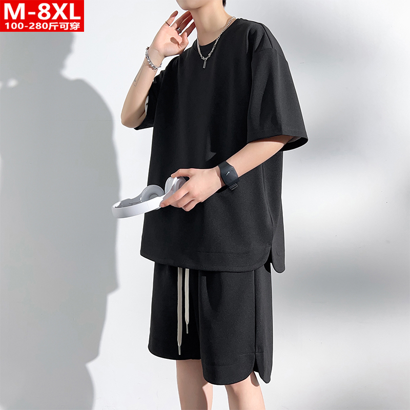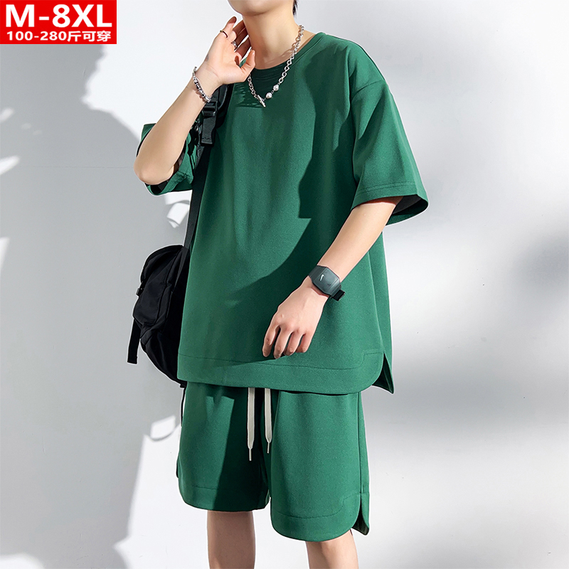 穿搭大码 运动套装 短裤 青少年潮流短袖 宽松休闲胖子加肥加大 男夏季