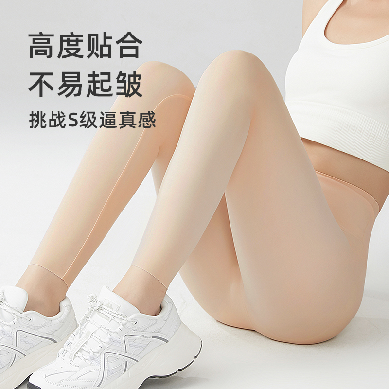 夏季 新比健身瑜伽裤 薄款 弹力大码 女外穿冰丝超薄打底裤 肤色鲨鱼裤