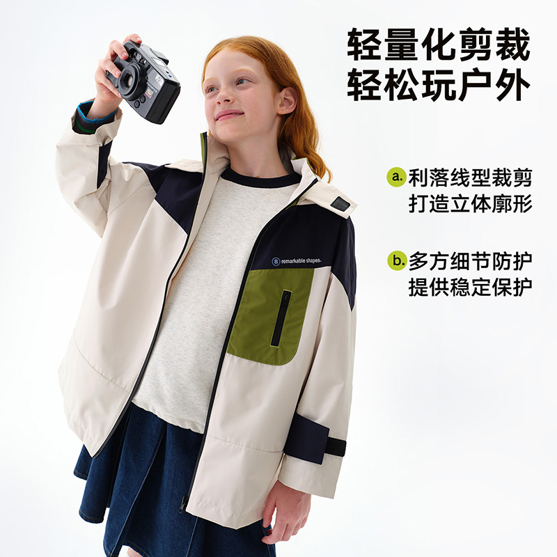 马拉丁儿童外套秋装 中性大童防风防水潮流户外三防连帽风衣 新款