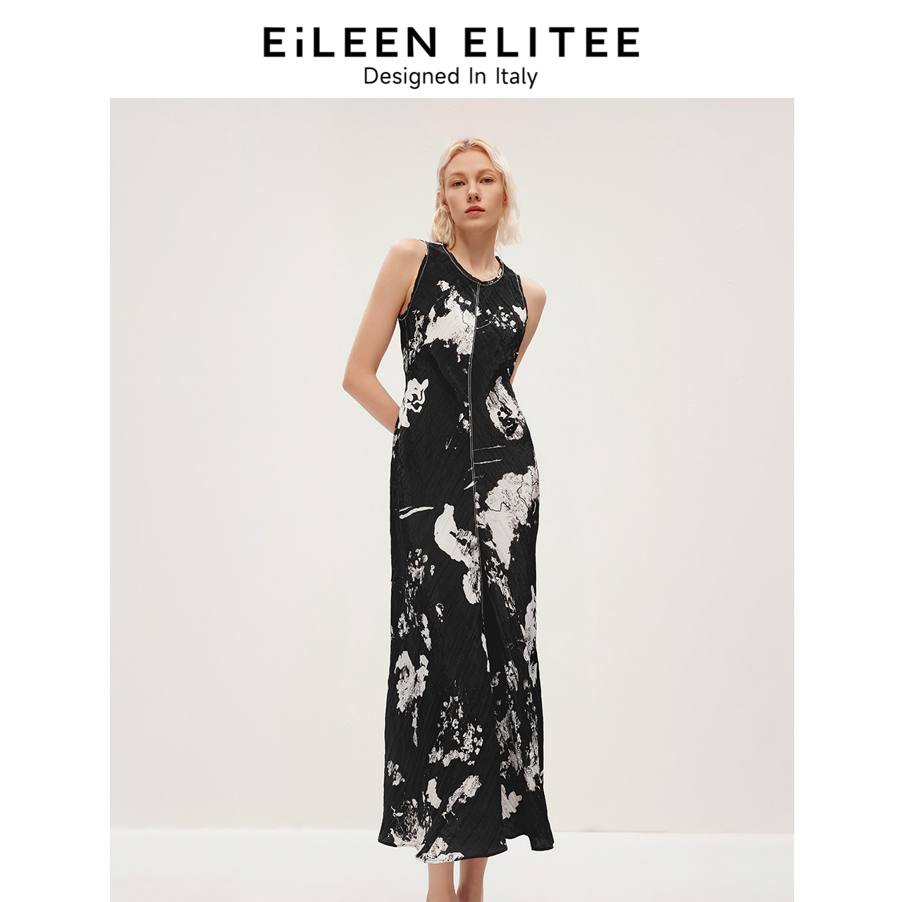 背心裙气质长款 印花无袖 朗姿法式 连衣裙2024夏新款 意大利设计