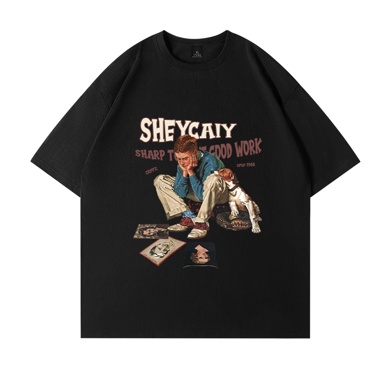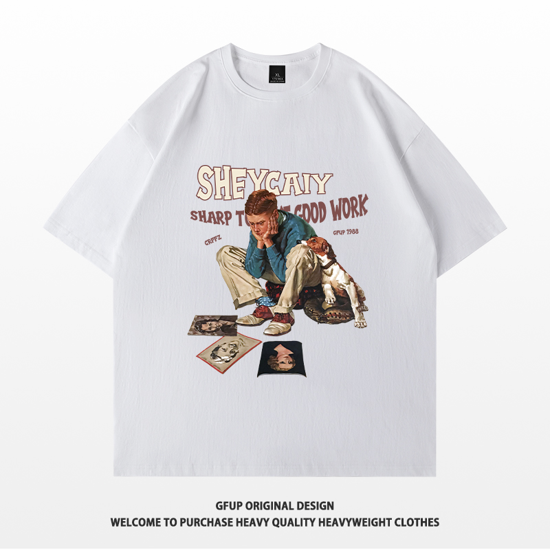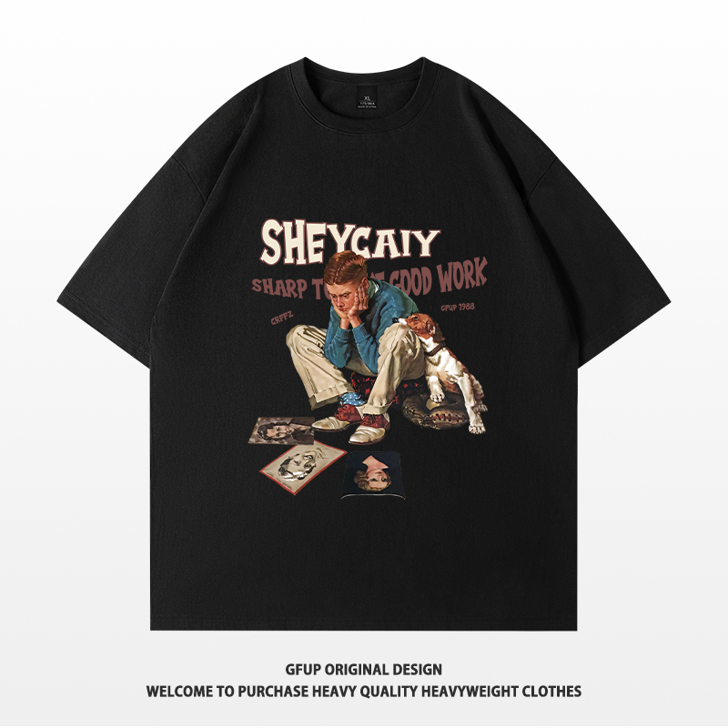 高街vibe潮牌宽松纯棉半袖 小众设计感复古印花短袖 T恤男潮流夏季