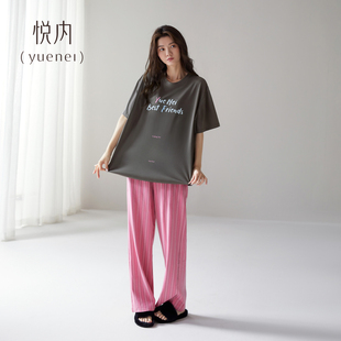 短袖 可出门外穿玫红色套装 长裤 薄款 纯棉家居服夏款 悦内睡衣女夏季
