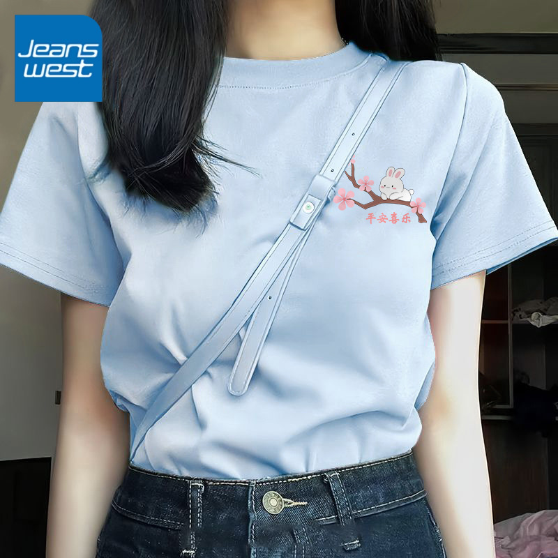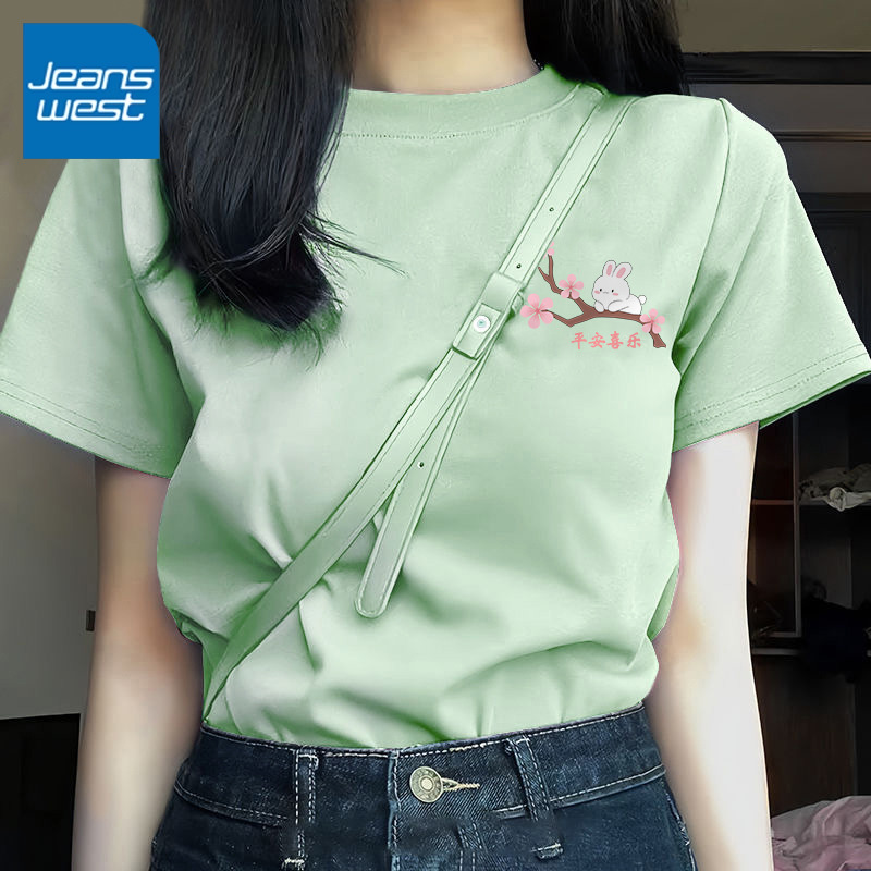夏季 2025新款 纯棉小众设计感上衣服 t恤女装 KMV真维斯国风红色短袖