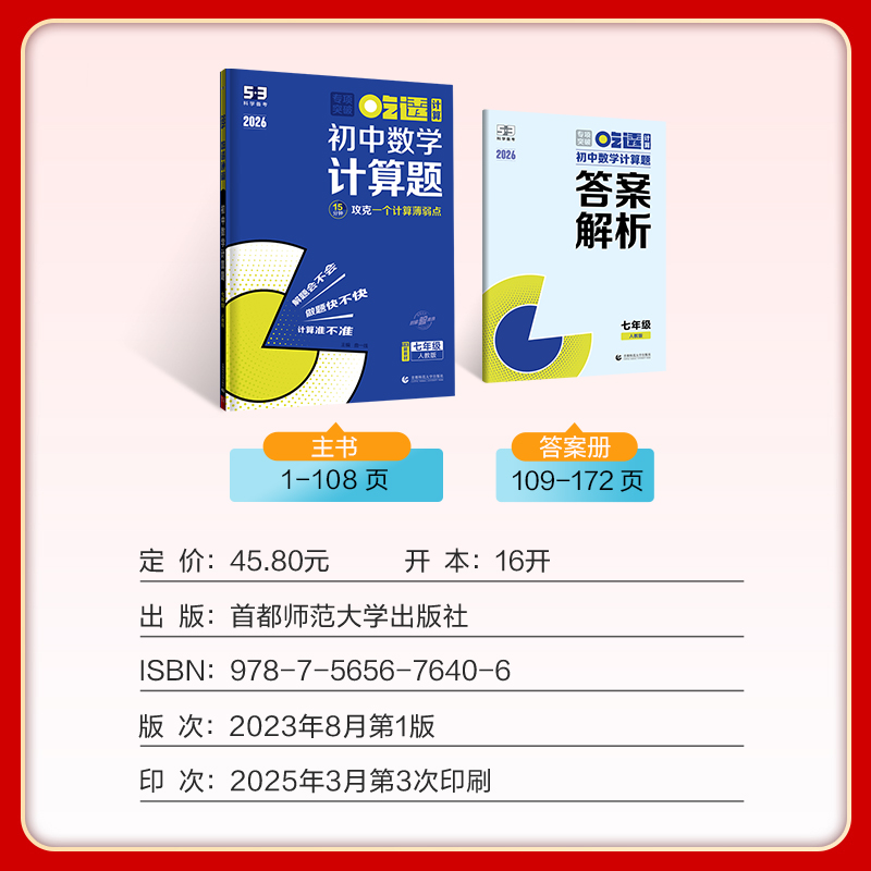 当当网2026版 初一二数学计算题强化高效训练 53初中数学计算题专项训练七八年级上册下册初中必刷题计算达人满分专项突破人教版