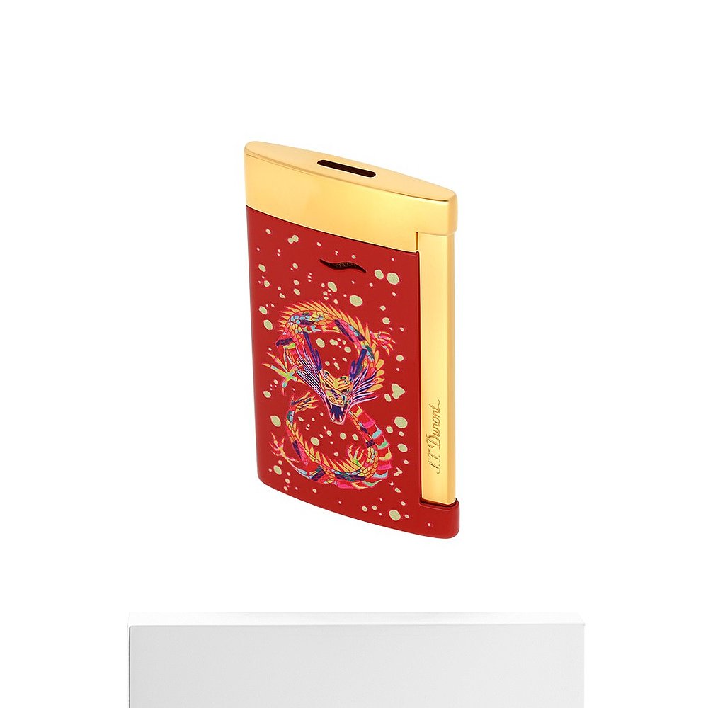 自营欧洲直邮S.T.Dupont法国都彭SLIM 7系列金色配亮红漆龙镀铬打