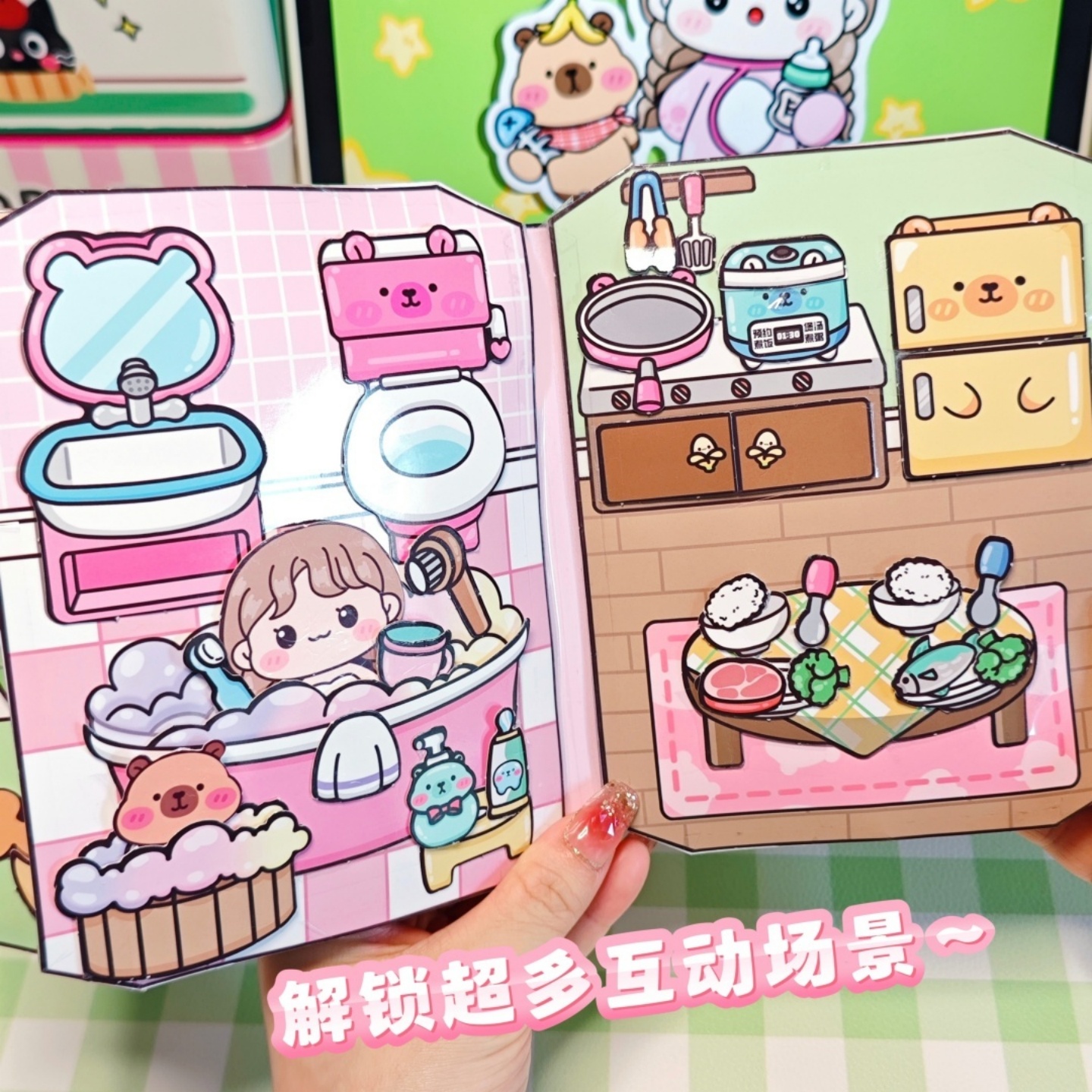 超迷你安静书新款 女孩手工diy卡皮巴拉豆豆本磁力贴纸书儿童玩具
