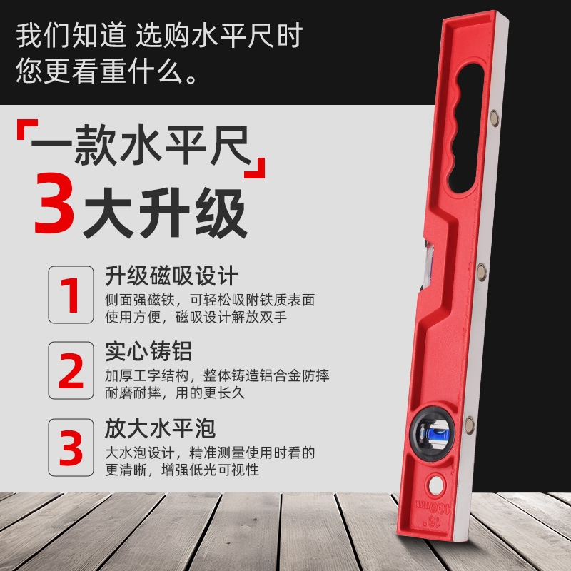 水平尺高精度实心铸铝铝合金迷你小型抗摔水平仪带磁磁铁工业级