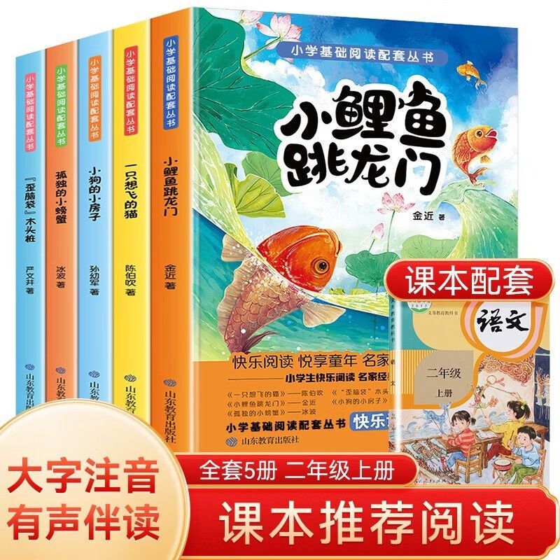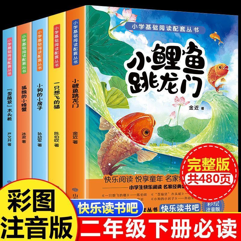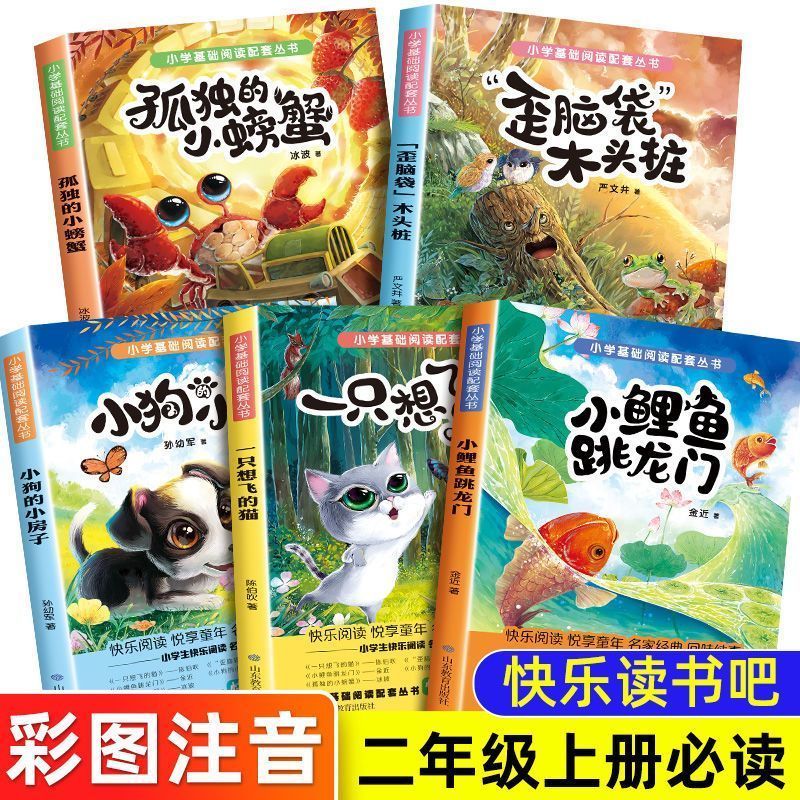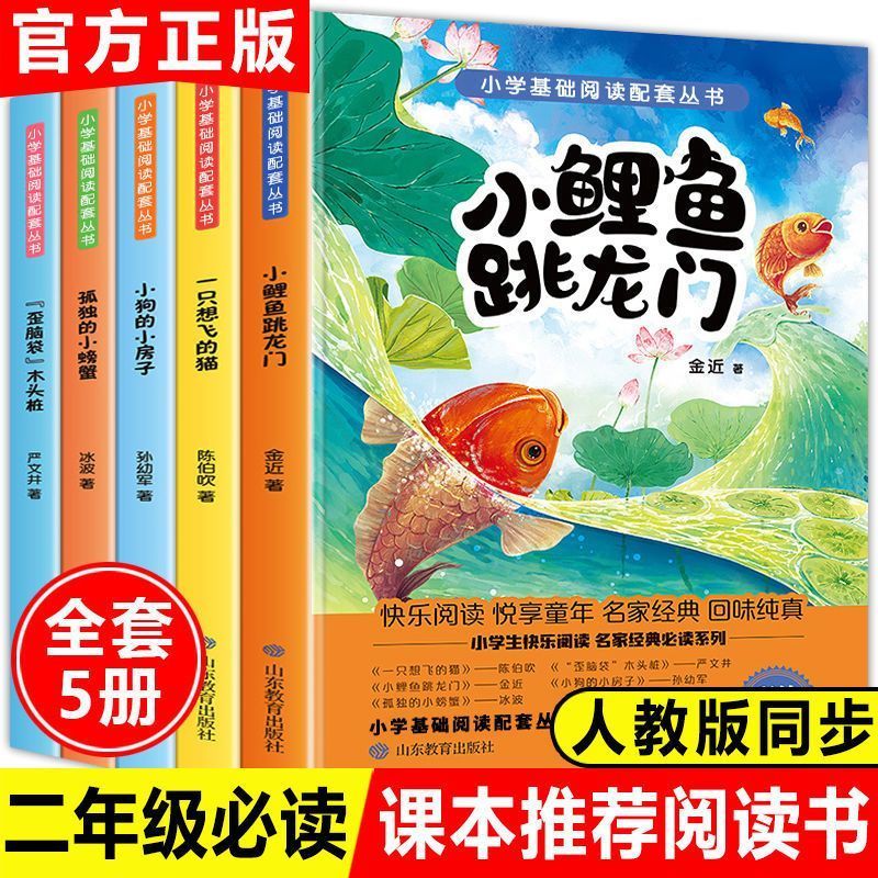 小鲤鱼跳龙门一只想飞 孤独小螃蟹歪脑袋木头桩人教版 猫 小房子 语文2下课外阅读书 小狗 快乐读书吧二年级上册必读全套5本注音版