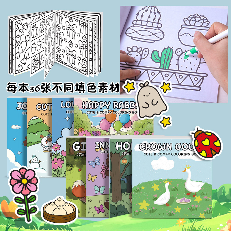 画画成人涂色绘画涂色本解压彩笔丙烯马克笔diy填色画本主题彩铅