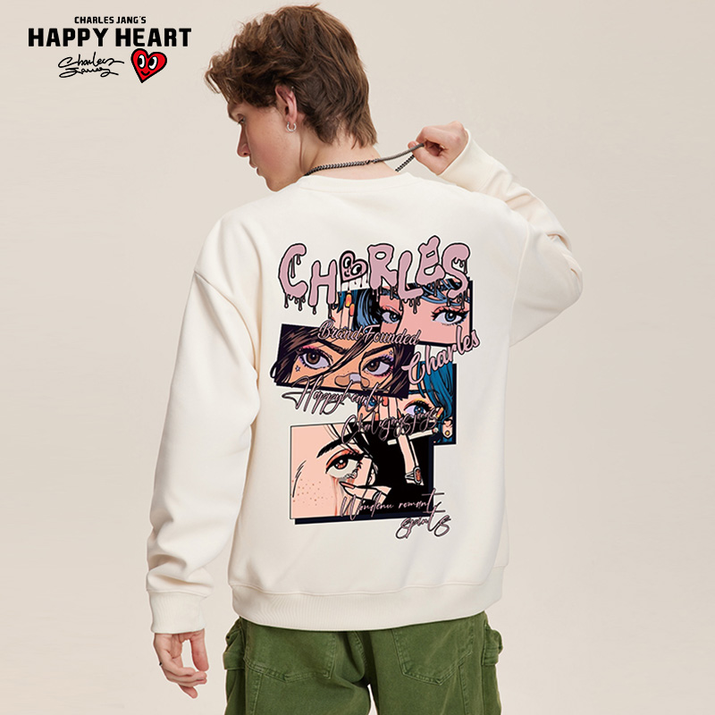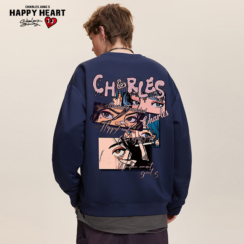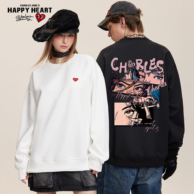 宽松落肩休闲内搭 动漫印花圆领卫衣男女春秋季 查尔斯桃心 美式