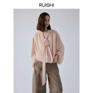 灯笼袖 RUISHI芮时 显瘦气质v领飘带衬衫 法式 上衣女秋 浮游诗意