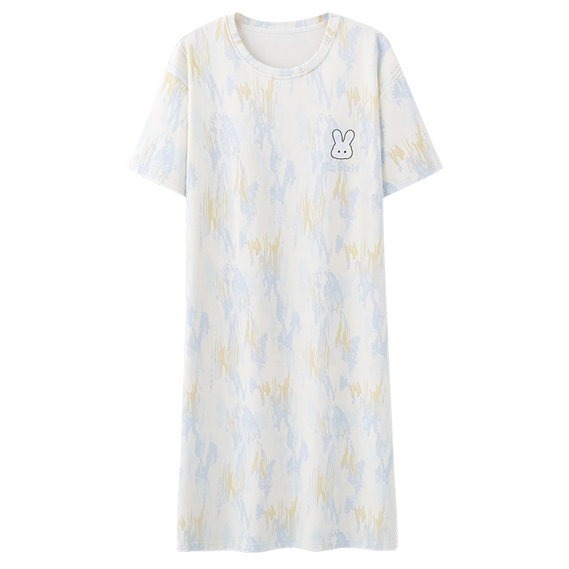 睡衣中长裙外穿家居服2025新款 猫人纯棉睡裙带胸垫女夏季 可爱短袖