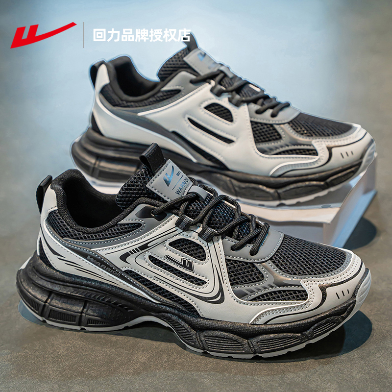 男鞋 新款 软底跑步鞋 网面透气休闲鞋 鸿星尔克运动鞋 黑色爸爸鞋 秋季