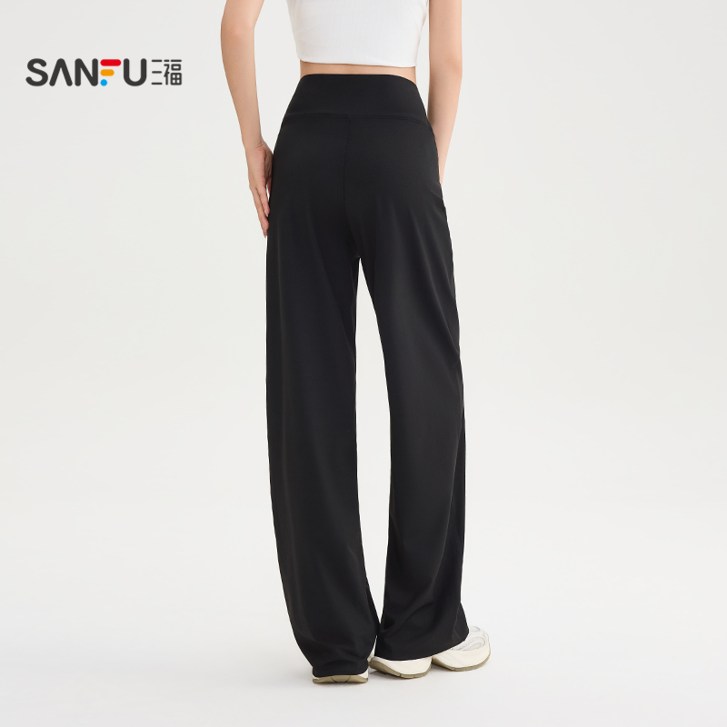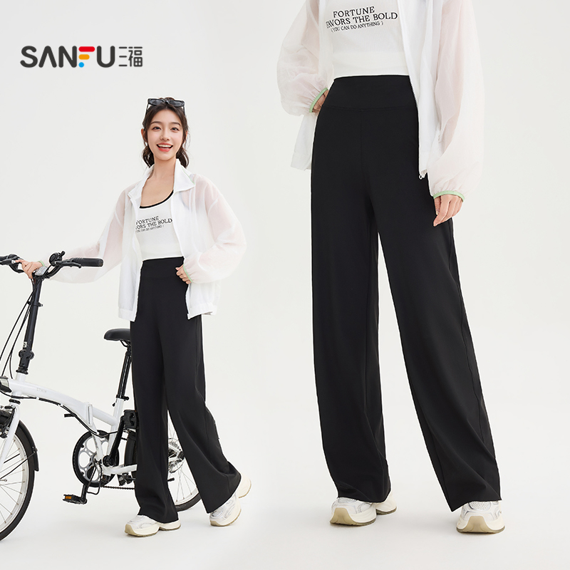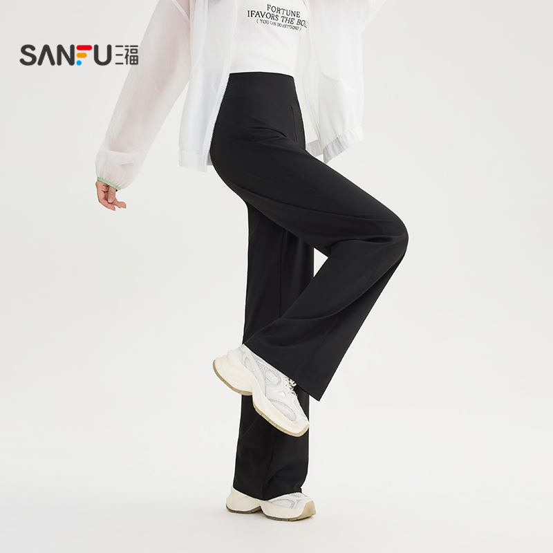 时尚 秋季 外穿高腰直筒裤 松弛黑色鲨鱼裤 三福休闲裤 子女装 2025新款
