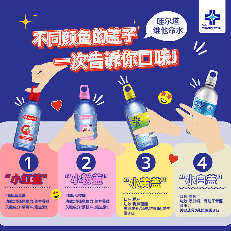 Yanhee哇尔塔进口维他命维生素水烟酸无糖维B功能饮料混合 12瓶装