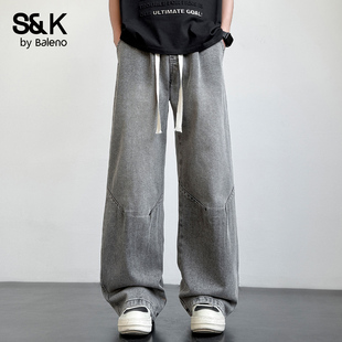 复古宽松高街阔腿直筒长裤 班尼路SK美式 薄款 男夏季 子MS 潮牌牛仔裤