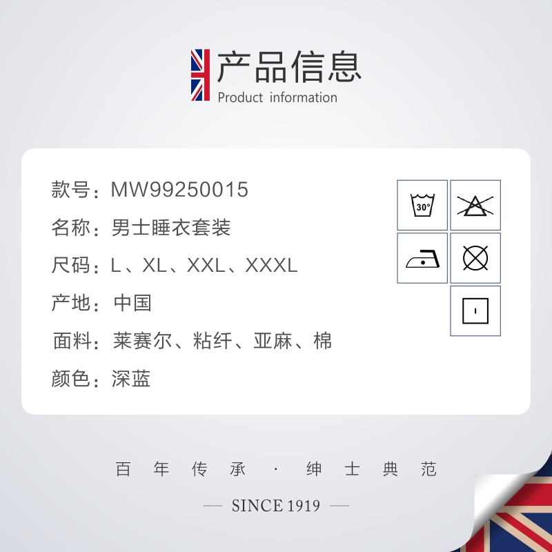 透气莱赛尔亚麻高档MW99250015 男士 BYFORD 百富送爸爸家居服套装